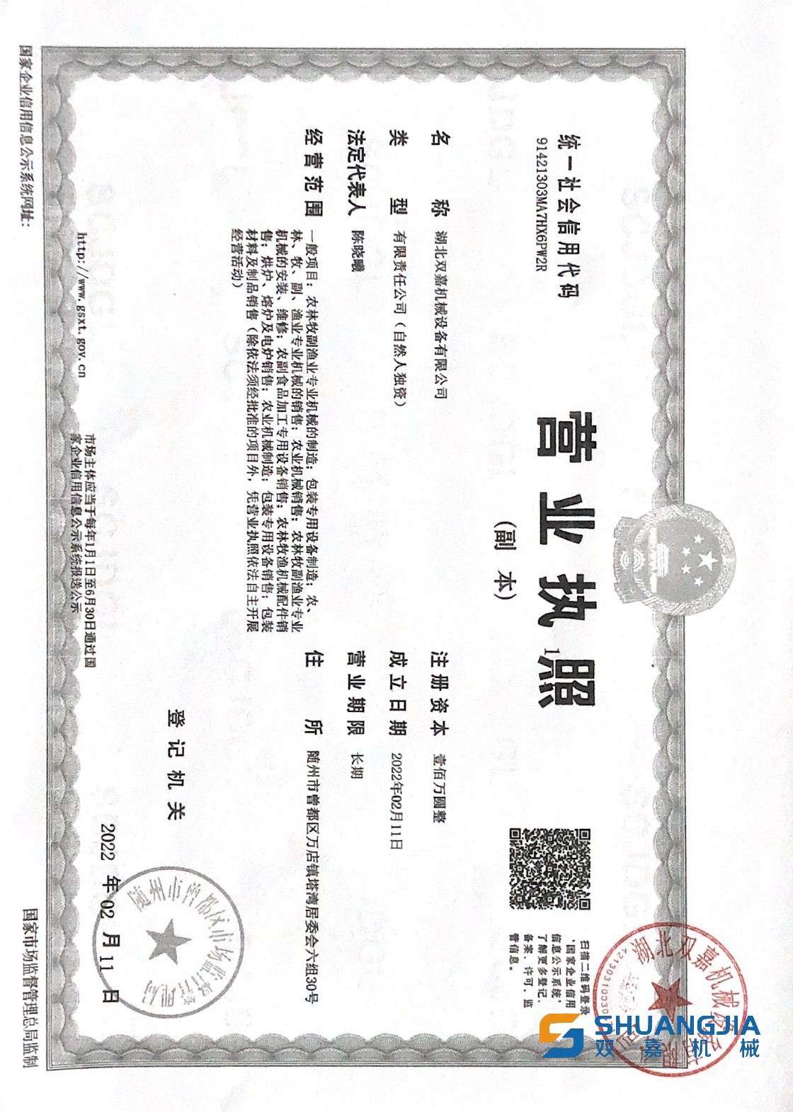 湖北雙嘉機械設備有限公司 地址:湖北省隨州市曾都區(qū)北郊明珠北路2號 聯(lián)系人:陳經(jīng)理 電話:18672950220