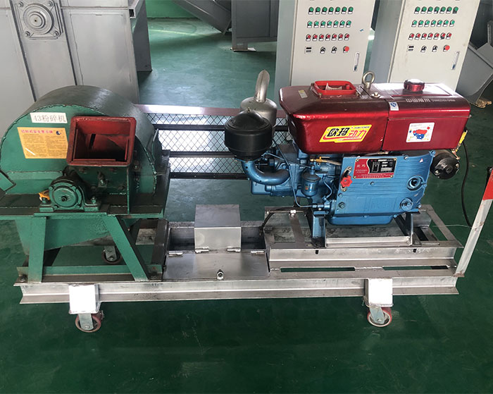粉碎機(jī)配柴油機(jī)啟動 根據(jù)客戶需要粉碎木材的粗細(xì)配粉碎機(jī)和柴油大小